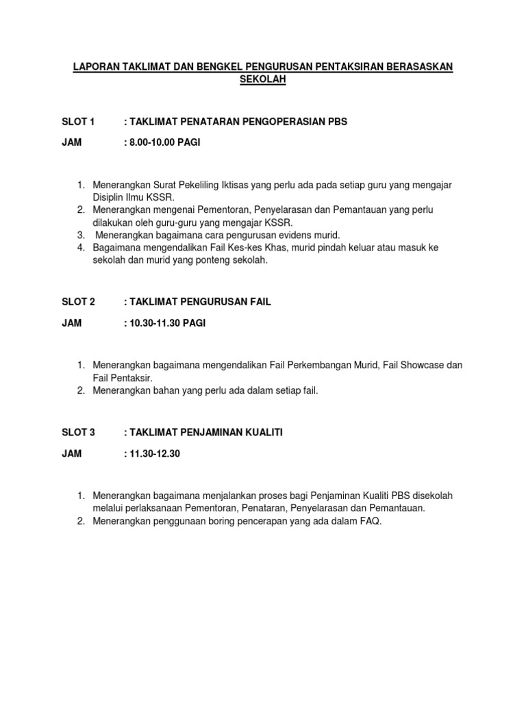 Laporan Taklimat Dan Bengkel Pengurusan Pentaksiran Berasaskan Sekolah Pdf