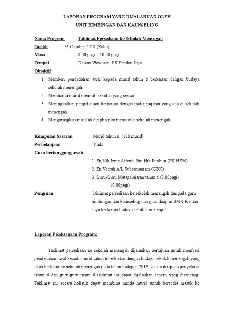 Laporan Program Taklimat Persediaan Ke Sekolah Menengah2018 Pdf